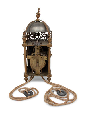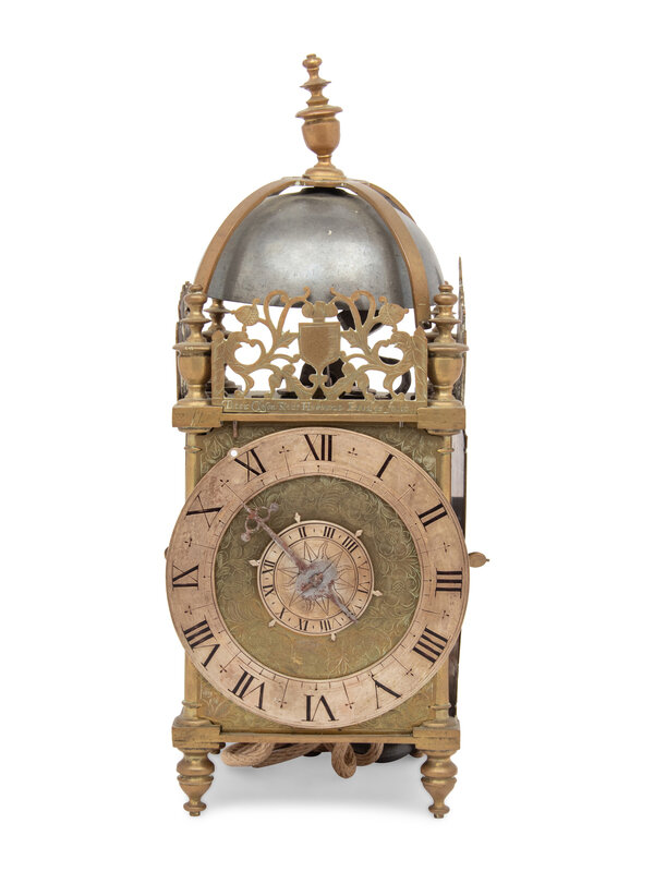 engraved for maker above the dial, with an anchor escapement and long pendulum.