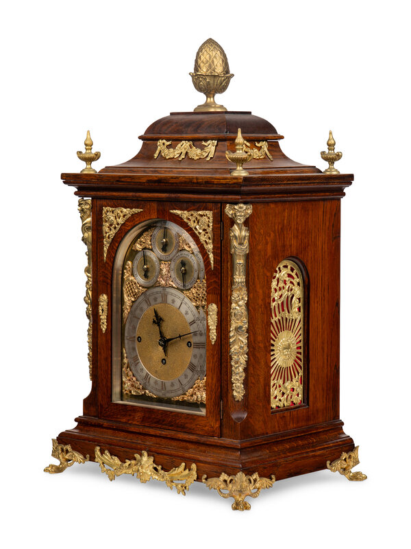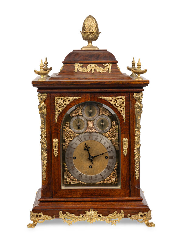 A George II Style Gilt Bronze Mounted Oak Bracket Clock