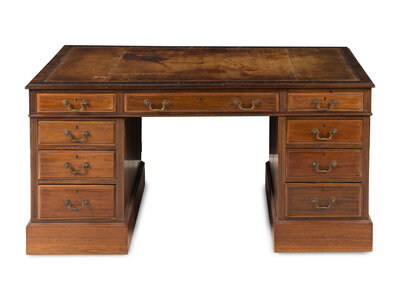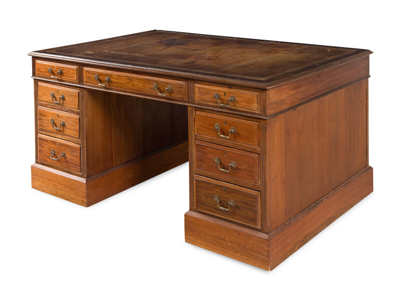 An English Mahogany Pedestal Partners Desk