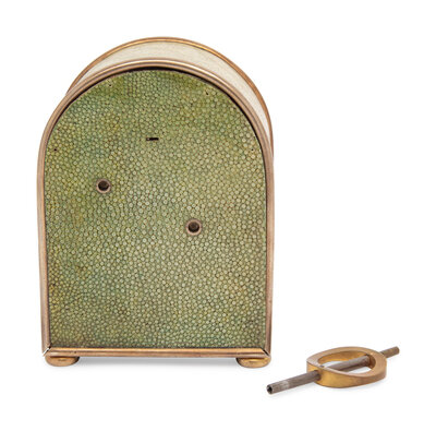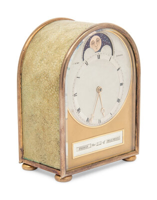An Edwardian Silver-Plate Mounted Shagreen Travel Clock