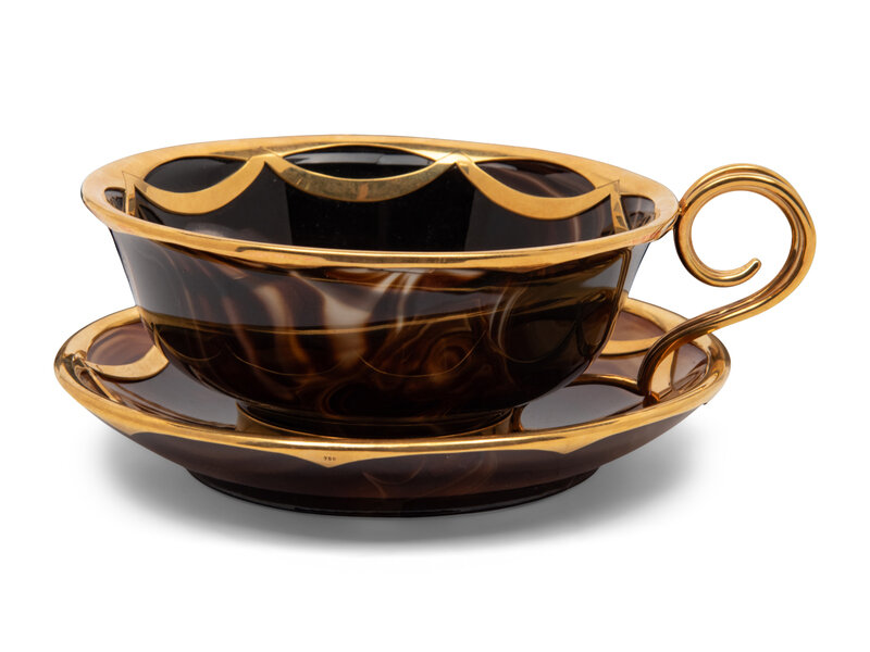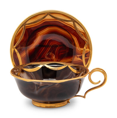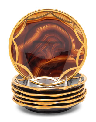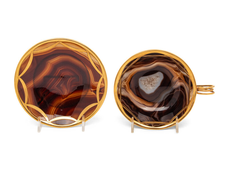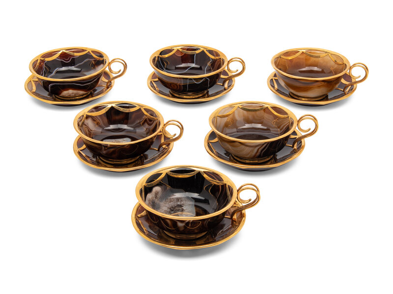 A Set of Six 18-Karat Gold Mounted Agate Cups and Saucers