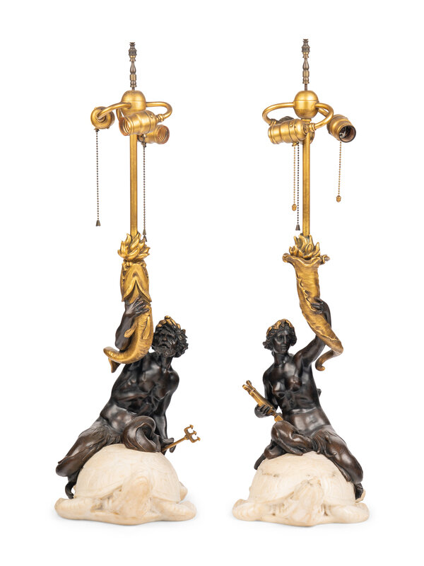 modeled as Poseidon and Amphitrite, each seated on a carved marble turtle.
