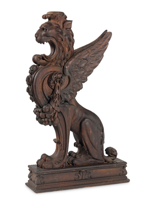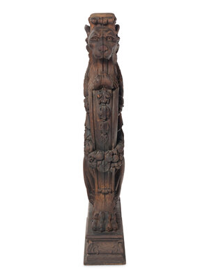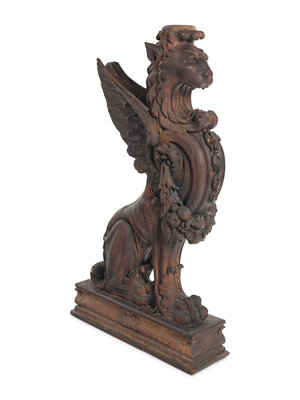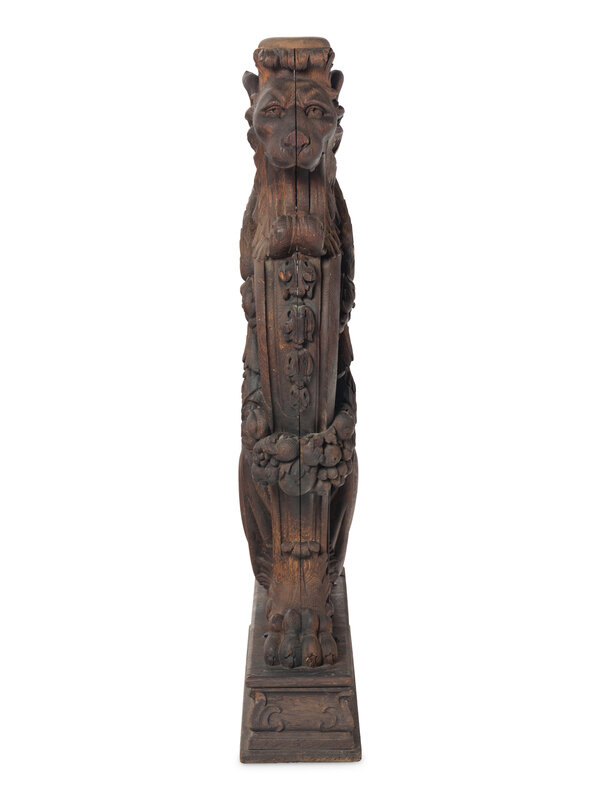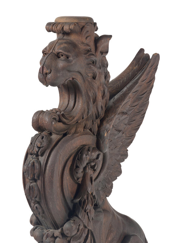 A Massive Carved Oak Griffin Newel Post
