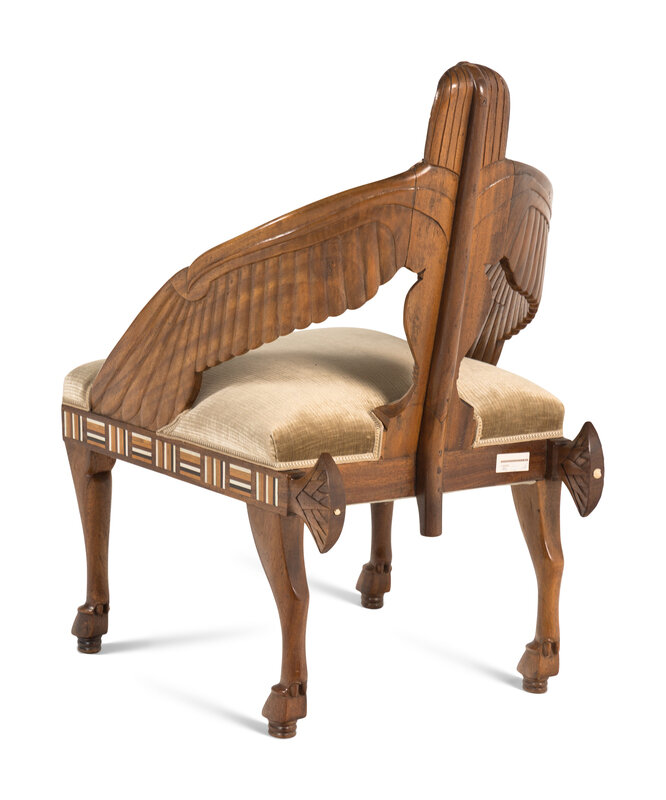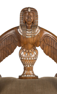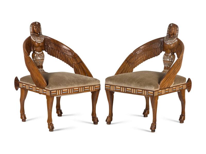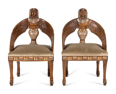 A Pair of Egyptian Revival Mother-of-Pearl Inlaid Figural Armchairs