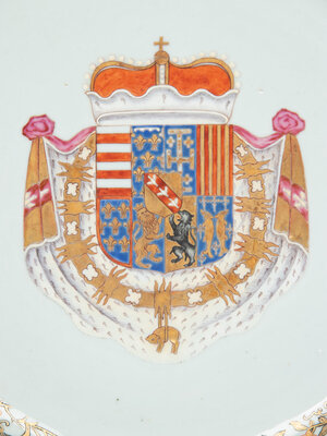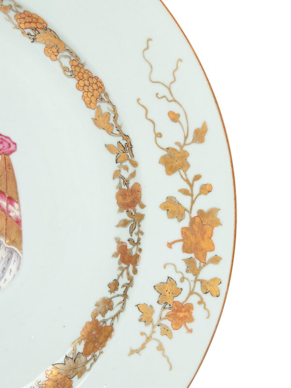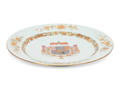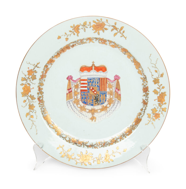 A Chinese Export Parcel-Gilt Armorial Porcelain Charger