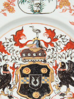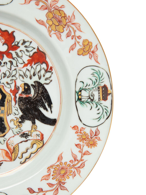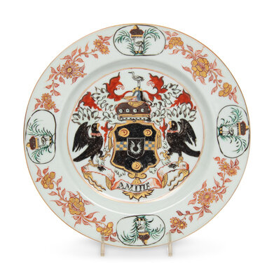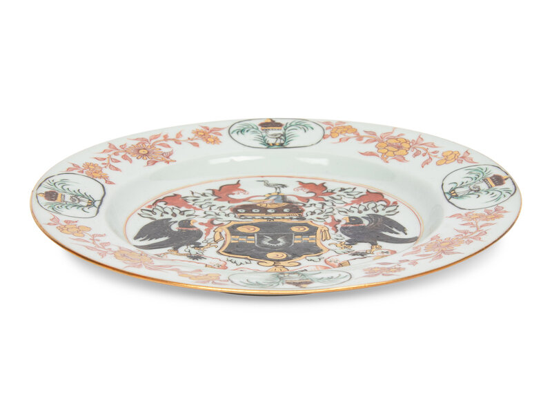 A Chinese Export Porcelain Parcel-Gilt Armorial Plate