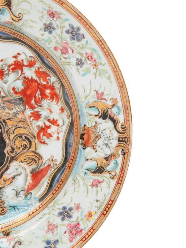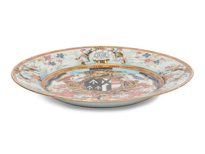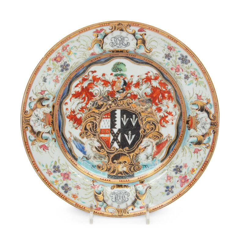 A Chinese Export Parcel-Gilt Armorial Porcelain Plate