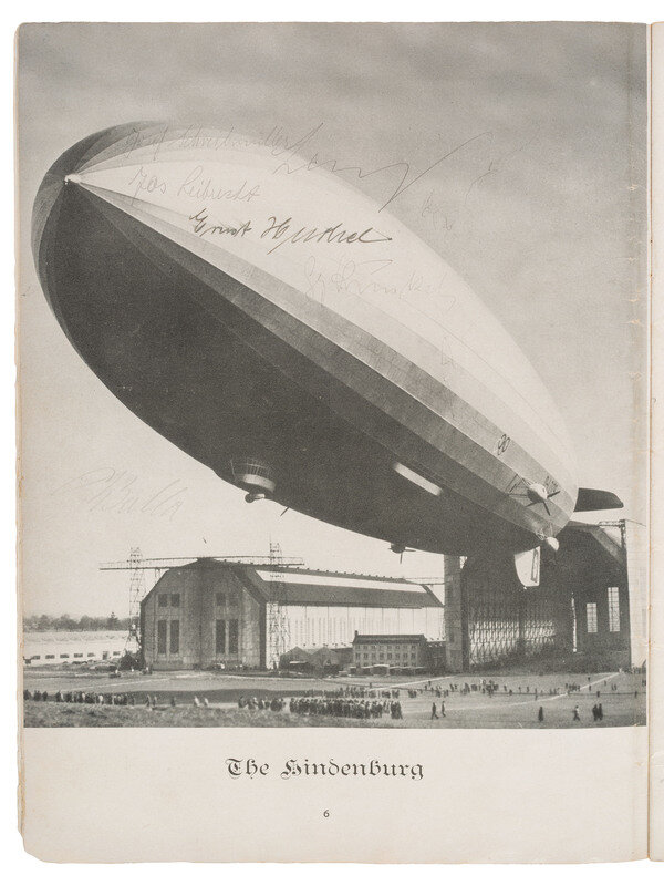 [TRANSPORTATION]. Hindenburg souvenir book signed by 5 crewmembers, including two who would die in the disaster. 1936.