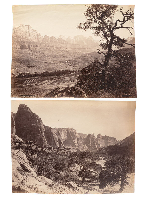 7 albumen silver prints, unmounted, each approx. 12 1/2 x 9 1/2 in. Four prints are titled in the negative and two are credited to John K. Hillers, although all were taken by the photographer while working with the US Geological Survey under John Wesley Powell during the 1870s.