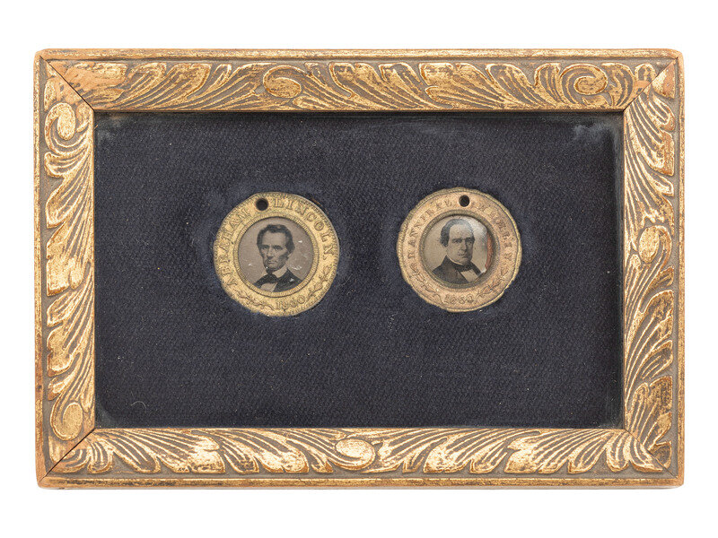 [LINCOLN, Abraham (1809-1865)]. Lincoln and Hamlin 1860 campaign ferrotypes. [With:] Miniature portrait of Lincoln.