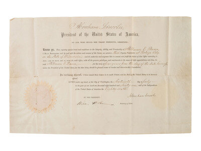 [LINCOLN, Abraham (1809-1865)]. Partially printed document signed as President. Washington, DC, 16 July 1861.