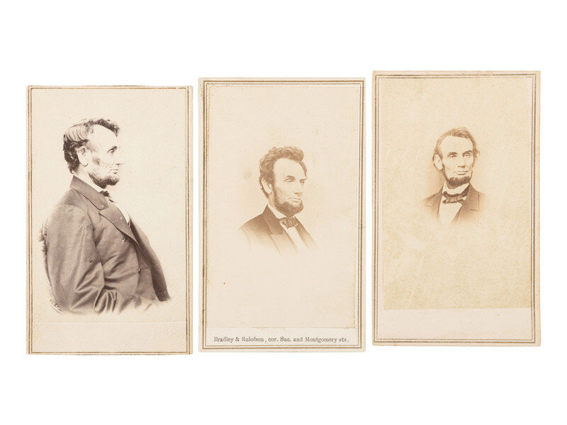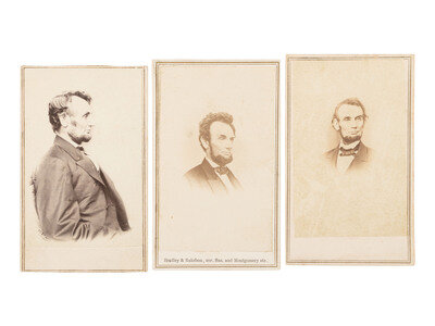 [LINCOLN, Abraham (1809-1865)]. 3 CDVs of Abraham Lincoln taken by BRADY and BERGER in January and February, 1864.
