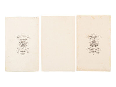 BRADY, Mathew (1822-1896), photographer. A vignetted portrait of Abraham Lincoln from a negative originally taken by Mathew Brady, 8 January 1864 (O-87). Recto imprint of Bradley & Rulofson, San Francisco, CA. Lincoln said of this particular portrait: "I don't know that I have any favorite portrait of myself; but I have thought that if I looked like any of the likenesses of me that have been taken, I look most like that one" (Ostendorf, p. 170).