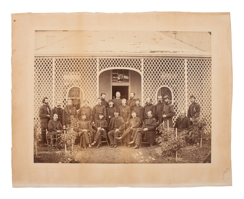 [LINCOLN, Abraham (1809-1865)]. Large format albumen group portrait of Civil War officers, most wearing Lincoln mourning badges and bands.