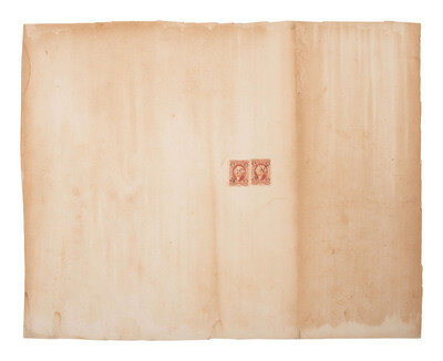 13 1/8 x 9 7/8 in. albumen photograph mounted to 16 1/4 x 13 in. (minimal toning, crisp print; mount with some toning, dampstaining, and wear to edges and corners). Uncredited, but with two 5-cent revenue stamps on verso, each with inked inscription reading, "L & Son[?]"
