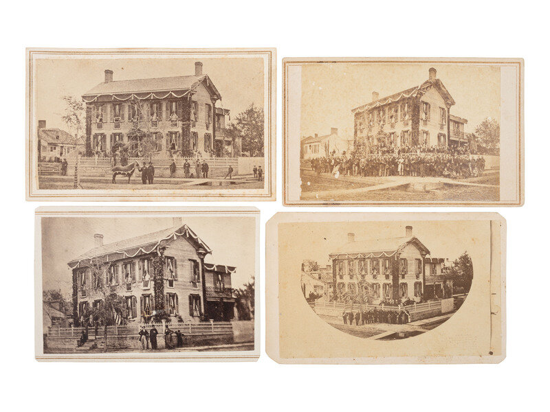 [LINCOLN, Abraham (1809-1865)]. 4 CDVs of mourners at the Lincoln home in Springfield, IL.