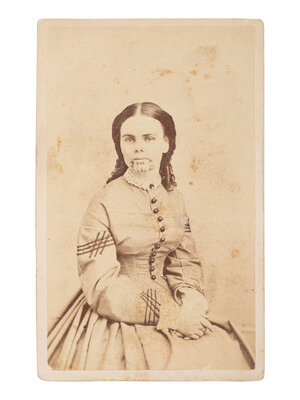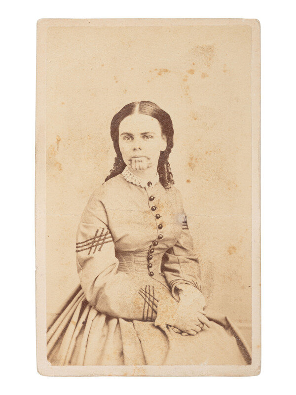 [EARLY PHOTOGRAPHY]. CDV portrait of Olive Oatman, taken and held captive by Native Americans for 5 years. Rochester, NY: Powelson.