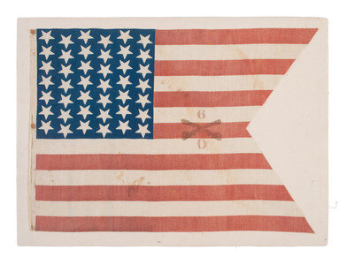 [FLAGS-INDIAN WARS]. 42-star American national parade guidon flag identified to the 6th Cavalry Regiment, Co. D. Ca 1889-1891.