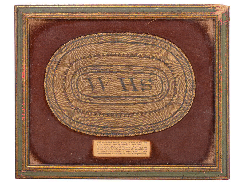 [ALASKA PURCHASE]. Two woven mats presented to Wm. Henry Seward and Allen B. Francis, US Consul to British Columbia by the Chief of the Makah tribe at Neah Bay in 1865.