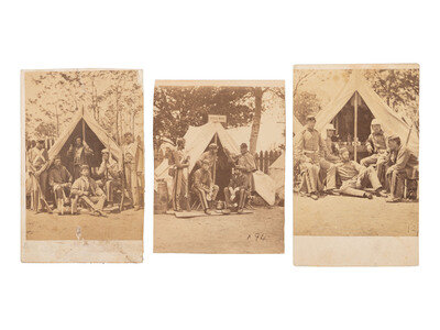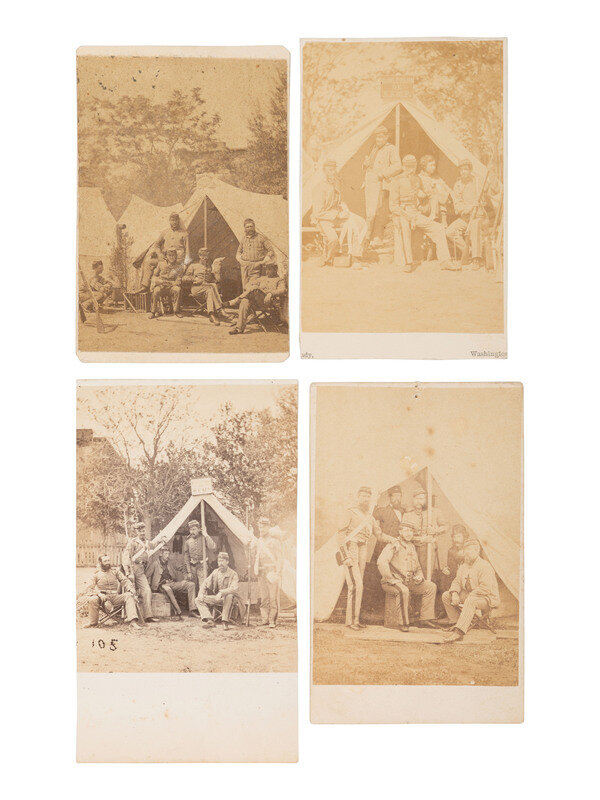 A selection of photographs of the 7th New York State Militia posed for group portraits at Camp Cameron, Washington, DC.