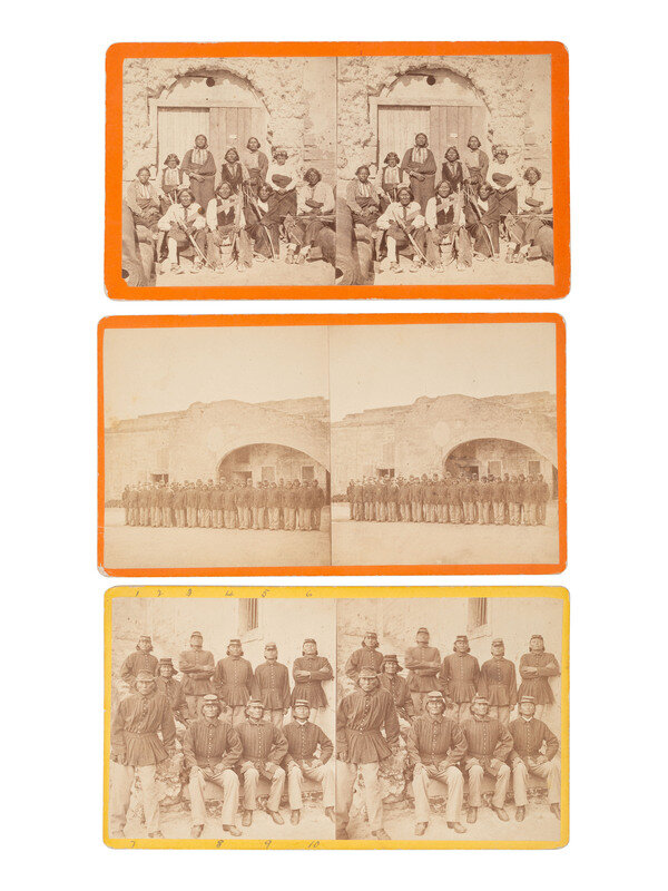 [NATIVE AMERICANS]. HAVENS, O. Pierre, photographer. A group of 3 stereoviews of Native American prisoners at Fort Marion, St. Augustine, Florida.