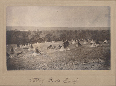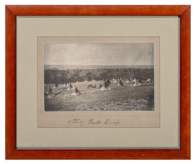 4 3/4 x 7 3/4 in. silver gelatin photograph on cardstock mount, Barry's blindstamp near center of print. Likely inscribed in Barry's hand in lower margin of mount, "Sitting Bull's Camp." Matted and framed, 11 x 13 1/4 in.