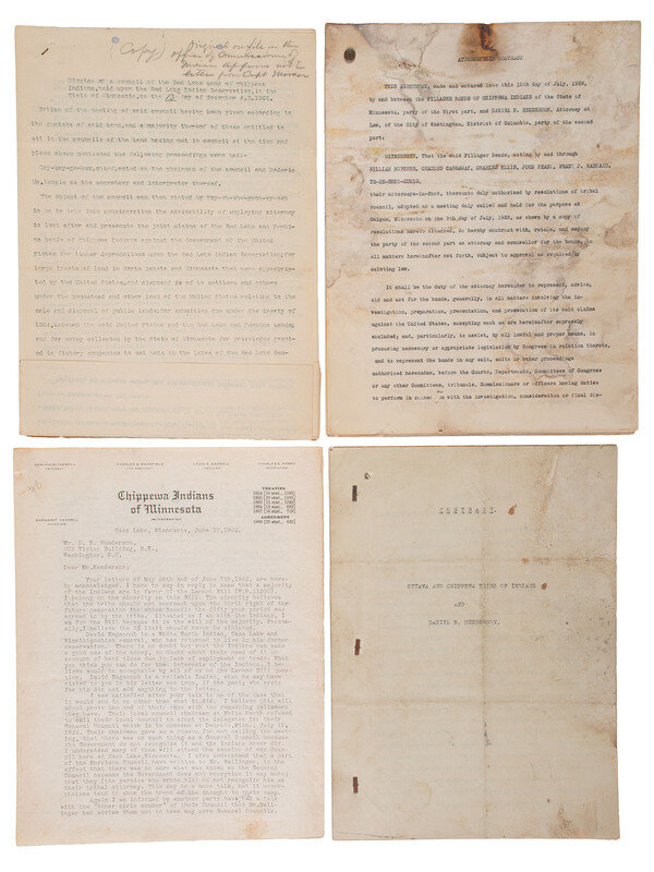 [NATIVE AMERICAN]. Archive of documents related to lawyer Daniel B. Henderson and his legal representation of various bands of Chippewa Indians.