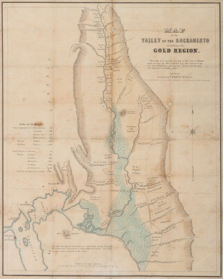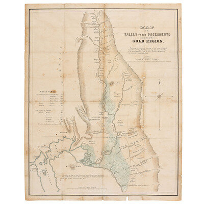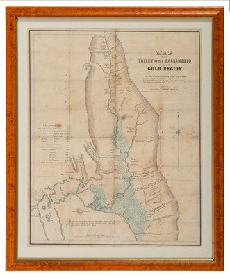 EXCEPTIONALLY RARE AND DESIRABLE MAP OF THE CALIFORNIA GOLD REGION AND IS REGARDED AS THE FIRST PUBLISHED MAP TO SHOW THE GOLD REGION.