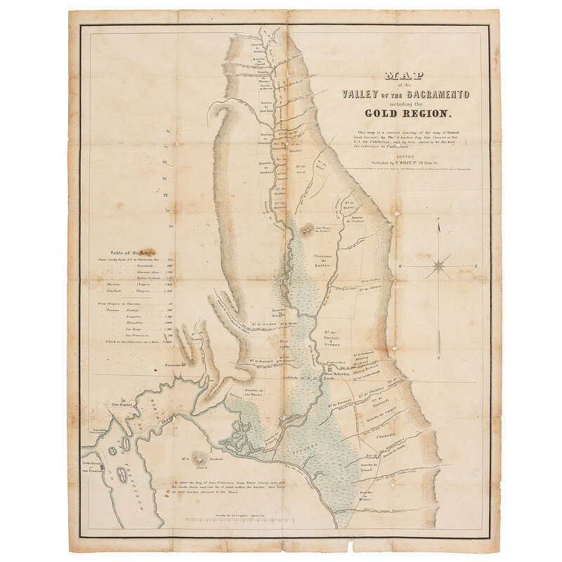 [GOLD RUSH]. LARKIN, Thomas O. (1802-1858). Map of the Valley of the Sacramento including the Gold Region. Boston: J.H. Bufford & Co and T. Wiley Jr., ca 1848.