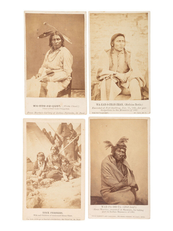 A group of 4 CDVs of Sioux related to the 1862 Dakota Uprising in Minnesota, incl. subjects held and executed at Fort Snelling.