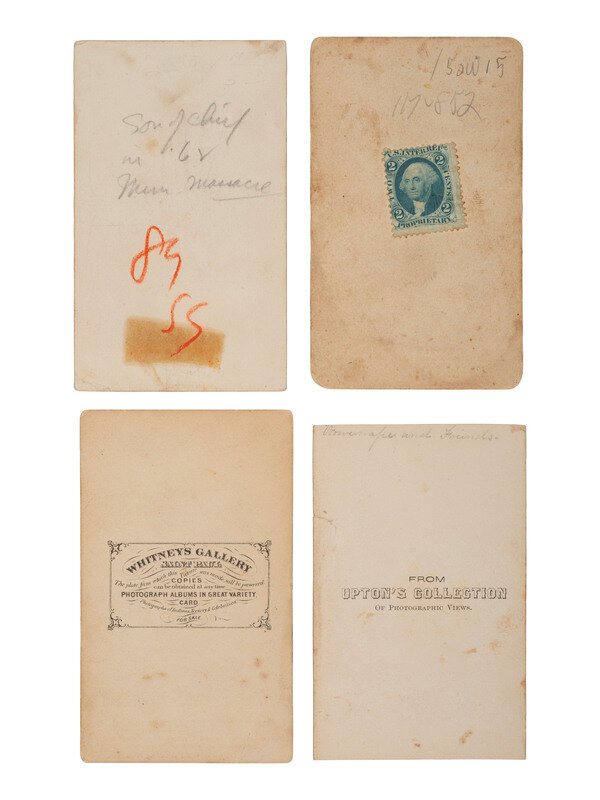 A group of 4 CDVs of Sioux Chief Little Crow and his son, who were involved in the 1862 Dakota Uprising in Minnesota, incl. images by WHITNEY & UPTON.