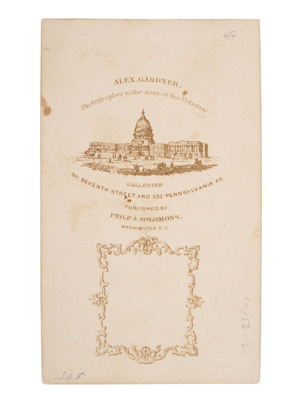 CDV on cardstock mount with Gardner's Washington, DC imprint on verso. Variant of a CDV illustrated in Witness to an Era: The Life and Photographs of Alexander Gardner by D. Mark Katz (p. 236). Taken in Washington, DC, in February 1867, this rare photograph of the Sauk and Fox delegation represents one of Gardner's first commissions to photograph Indian delegations that were visiting the capital with great frequency (see Katz, p. 235 for more information).
