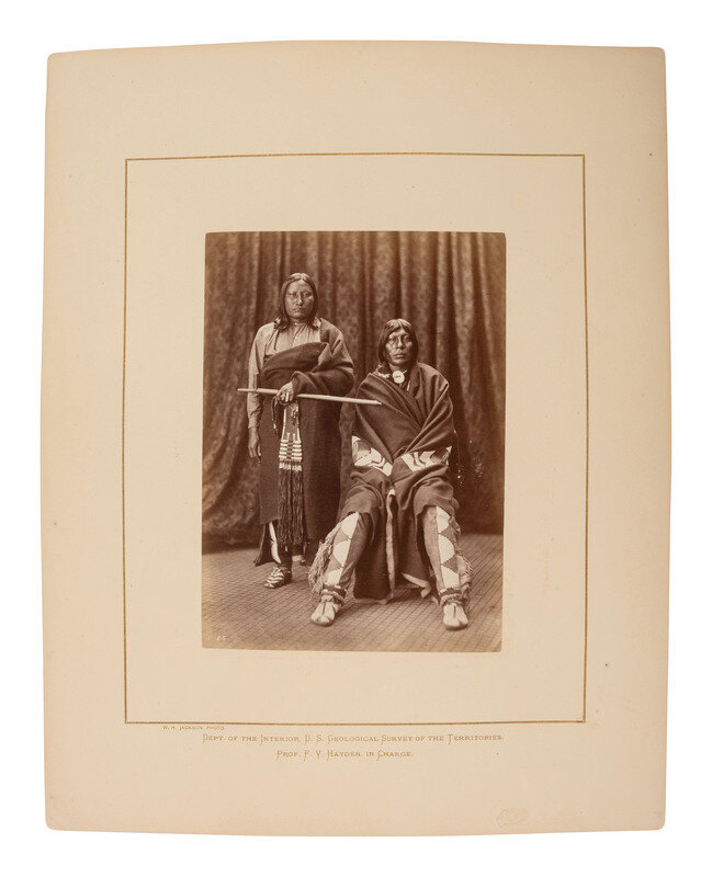 JACKSON, William Henry (1843-1942)]. Albumen photograph of Plenty Bears and Old Eagle, Arapaho. Washington, DC, before 1877.