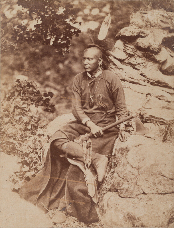 HILLERS, John K. (1843-1925), photographer. Photograph of an Osage warrior holding a tomahawk. Okmulgee, Indian Territory, 1875.
