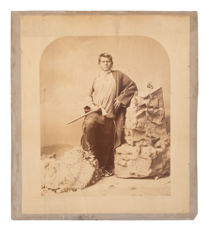 3 mammoth plate albumen photographs, approx. 19 x 15 1/2 in. or smaller (including margins), on 20 x 18 in. cardstock mounts with names and tribal identifications written in the negatives.