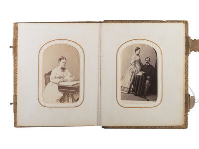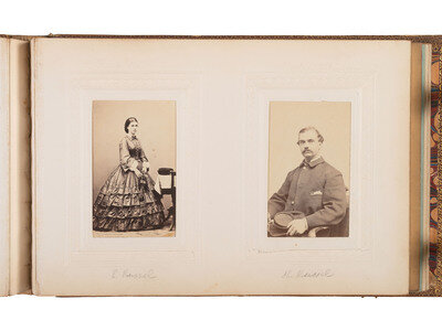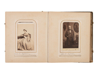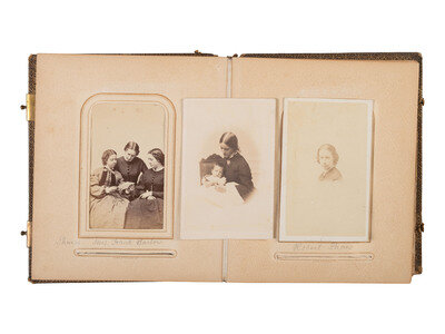 3 CDV albums identified to prominent Massachusetts families including the Shaw Family (Robert Gould Shaw), the Higginson Family (James Jackson Higginson), and the Cabot and Heath Families. All were considered part of the Boston Brahmin class, as well as the influential abolitionist social circles in Boston.