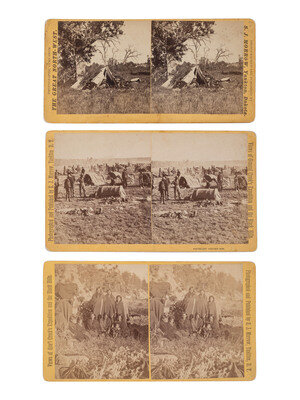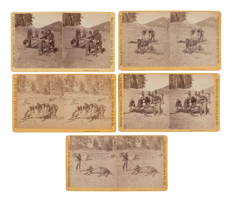 MORROW, Stanley J. (1843-1921), photographer. A group of 19 stereoviews from General Crook's Expedition and the Black Hills series, incl. reenactment of the 1876 "Starvation March."