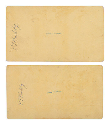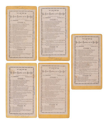 The lot is highlighted by 5 stereoviews depicting soldiers' reenactments of events on this 1876 march, including the following titles: Soldier shooting abandoned horses, for meat. -- Soldiers cutting up abandoned horse. -- Soldiers carrying Off Horse Meat. -- Soldiers Fighting over Horse Meat (2 images). -- 3 with ink signature and/or estate stamp of P.T. Buckley on verso.