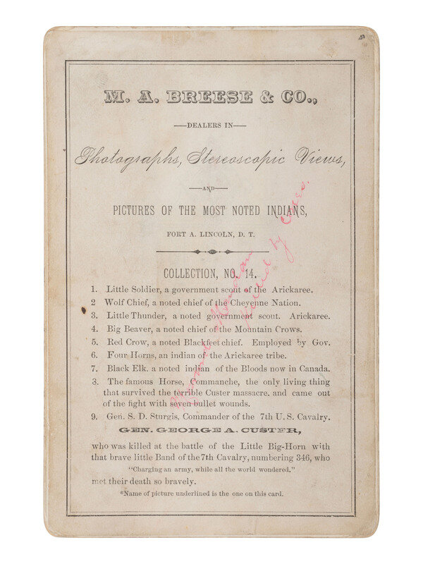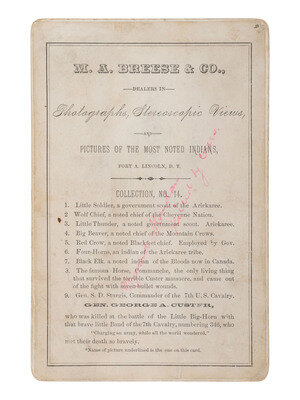 [CUSTER, George Armstrong]. Cabinet card of Osage scout identified as "Howard Mandan" who served with Custer at the Battle of Washita. Fort A. Lincoln, DT: M.A. Breese & Co.