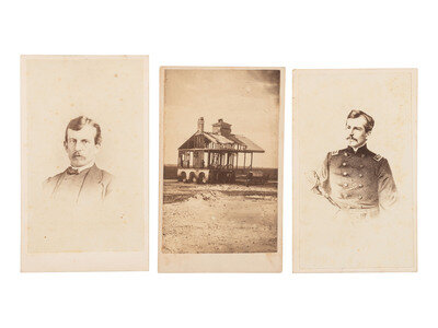 [With:] CDV depicting partly destroyed Beacon House on Morris Island, which was utilized as a signal station and headquarters during the Battle of Fort Wagner. Uncredited, ca 1864.