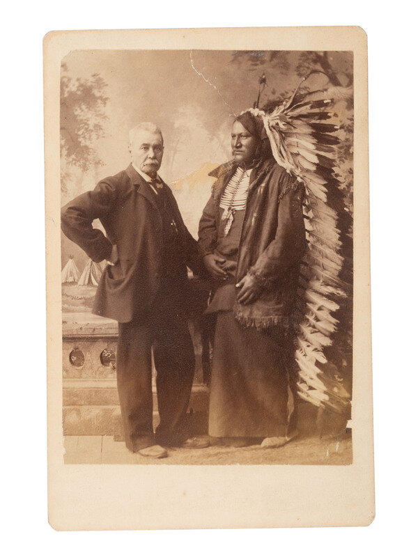 [BARRY, David F. (1854-1934), photographer]. Cabinet card of Chief John Grass and American fur trader Alexander Faribault.