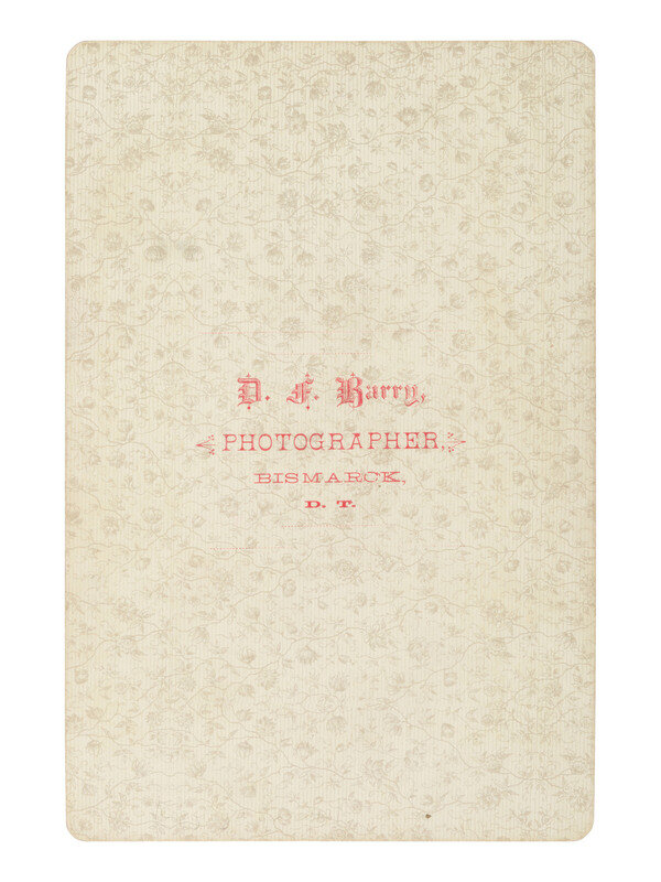Cabinet photograph on cardstock mount of Son of the Star (on horseback), and Black Horse. Mount recto with printed caption affixed to lower margin, "Black Horse and Son of the Star," and verso with D.F. Barry's Bismarck, Dakota Territory imprint. Ca 1880s.