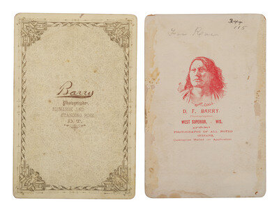 5 cabinet photographs on cardstock mounts, each with pasted identification below image on mount and Barry's Bismark, Dakota or West Superior, Wisconsin imprint. Printed ca 1880s-1890s.