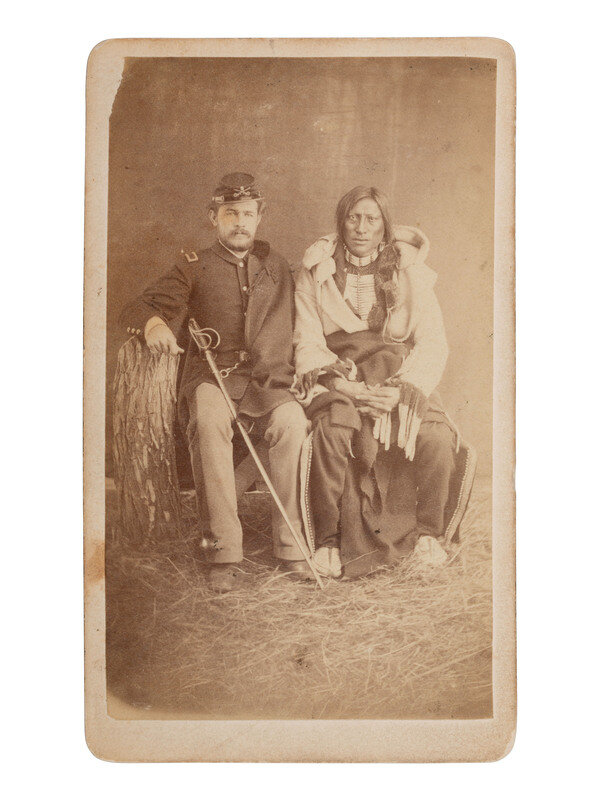 CROSS, W.R. (1839-1907), photographer. CDV of Brule Lakota Sioux Chief Hollow Horn Bear with an unidentified 5th US Cavalry second lieutenant. Niobrara, NE: [ca 1880].