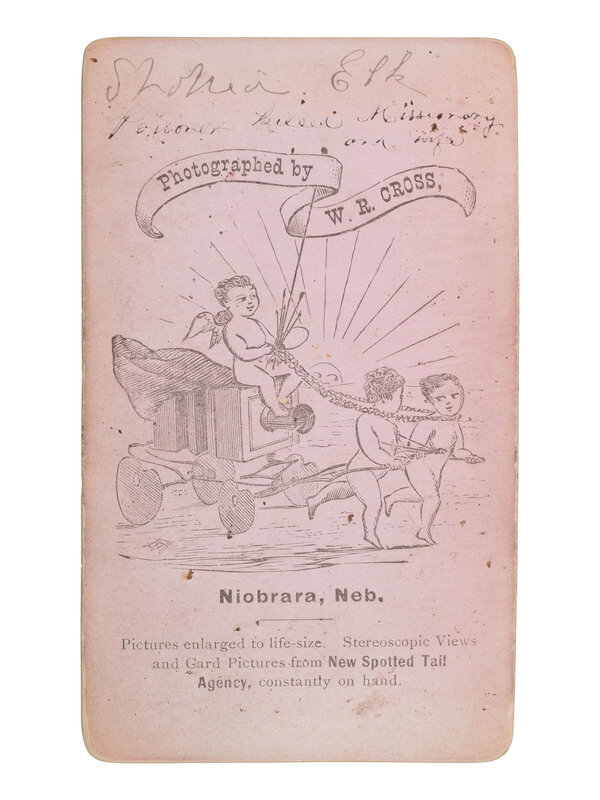 CDV on cardstock mount. Verso bears pictorial imprint for W.R. Cross. Period manuscript notation on verso, which is difficult to discern, but appears to reference "Spotted Elk," who is not depicted in the photograph.
