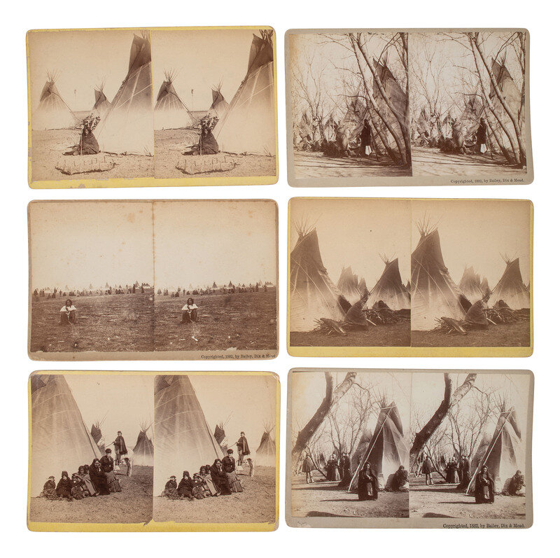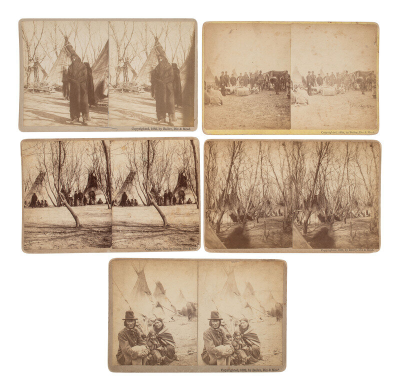A group of 11 stereoviews documenting Sitting Bull's internment at Fort Randall, Dakota Territory. Bailey, Dix, and Mead, 1882.