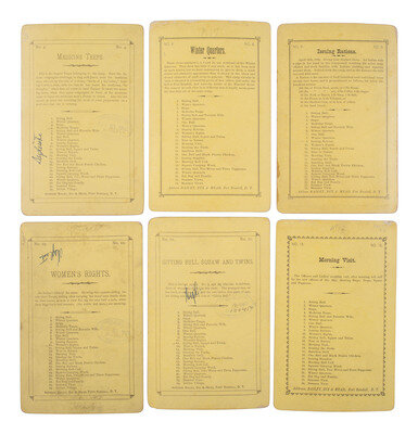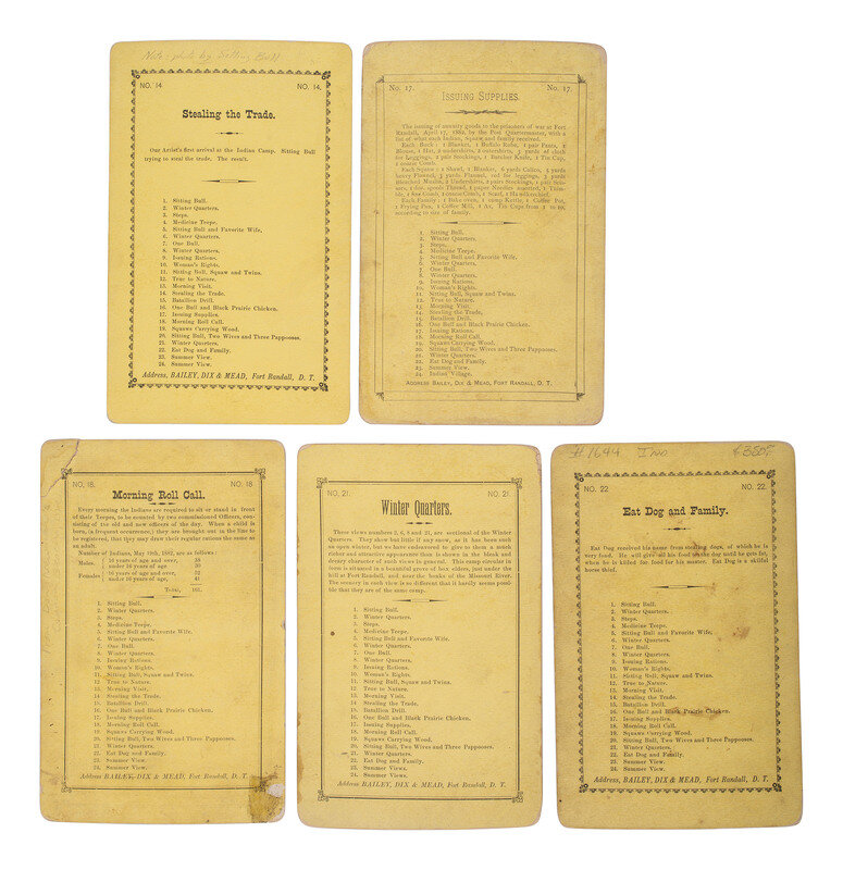 No. 4, Medicine Teepe. -- No. 8, Winter Quarters. -- No. 9, Issue Rations. -- No. 10, Women's Rights. -- No. 11, Sitting Bull, Squaw and Twins. -- No. 13, Morning Visit. -- No. 14, Stealing the Trade. -- No. 17, Issuing Supplies. -- No. 18, Morning Roll Call. -- No. 21, Winter Quarters. -- No. 22, Eat Dog and Family.