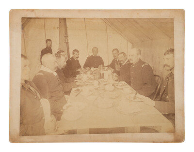 Included is an important image of Nelson A. Miles and his officers sharing a meal inside a Sibley-style tent. -- Two slightly different views of General Miles and members of his staff, 13 January 1891, taken while Miles was the commanding general of the Division of the Missouri. -- General Miles and fellow officers on horseback.