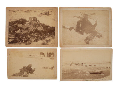 [WOUNDED KNEE]. Four photographs taken in the immediate aftermath of Wounded Knee, incl. views of the slain bodies of Chief Big Foot and the Medicine Man.