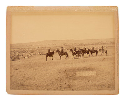 GRABILL, John C.H. (1849-1903), photographer. Photograph of General Nelson Miles and his staff viewing a Lakota camp after Wounded Knee, January 1891.